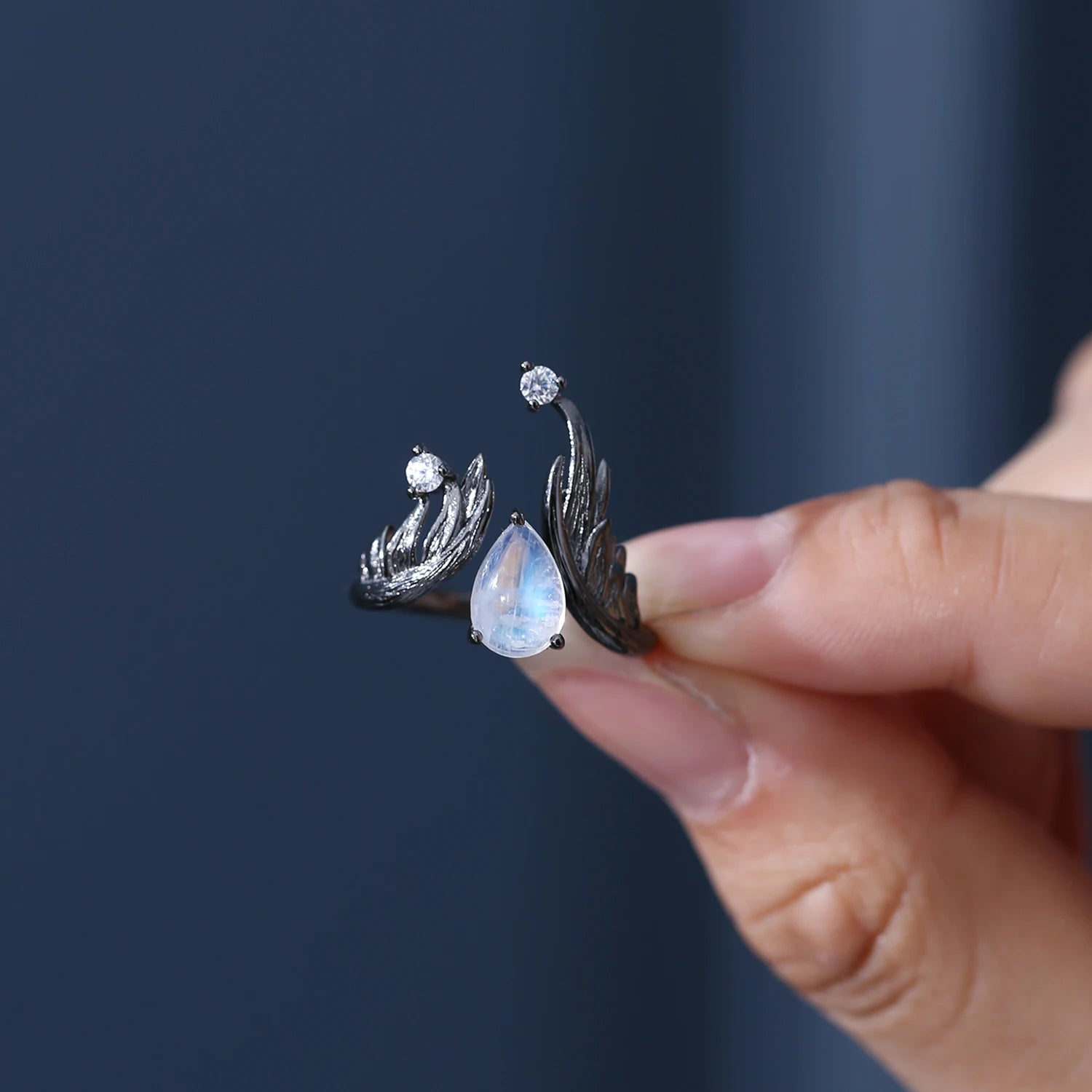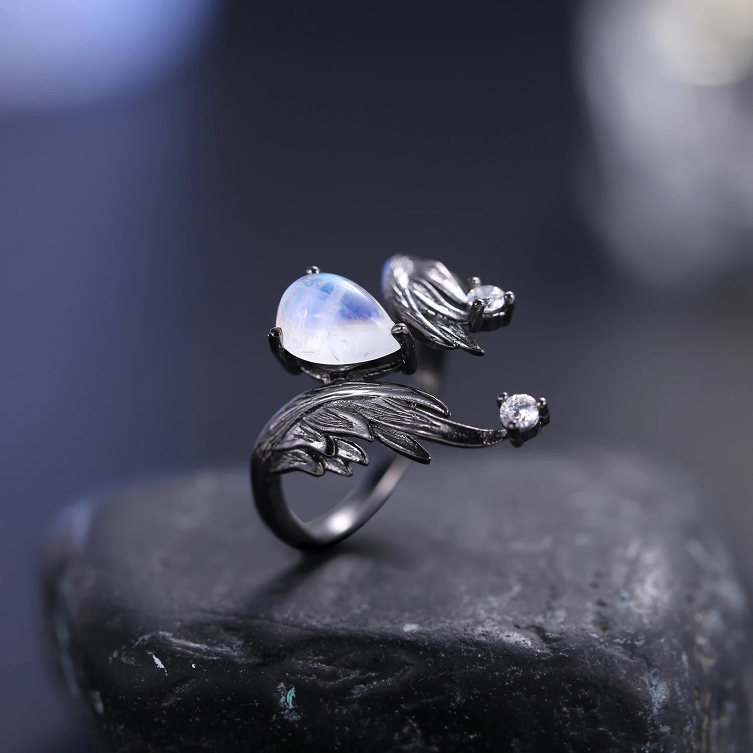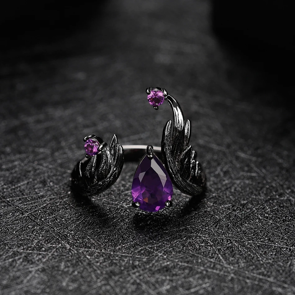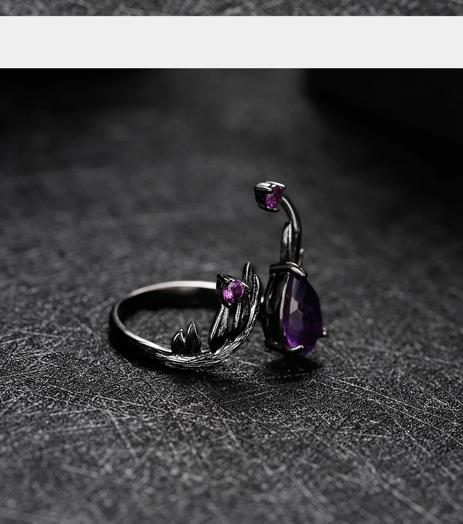1.43Ct Natural Amethyst Gemstone Rings 925 Sterling Silver Handmade Adjustable Angel's Wing Ring for Women