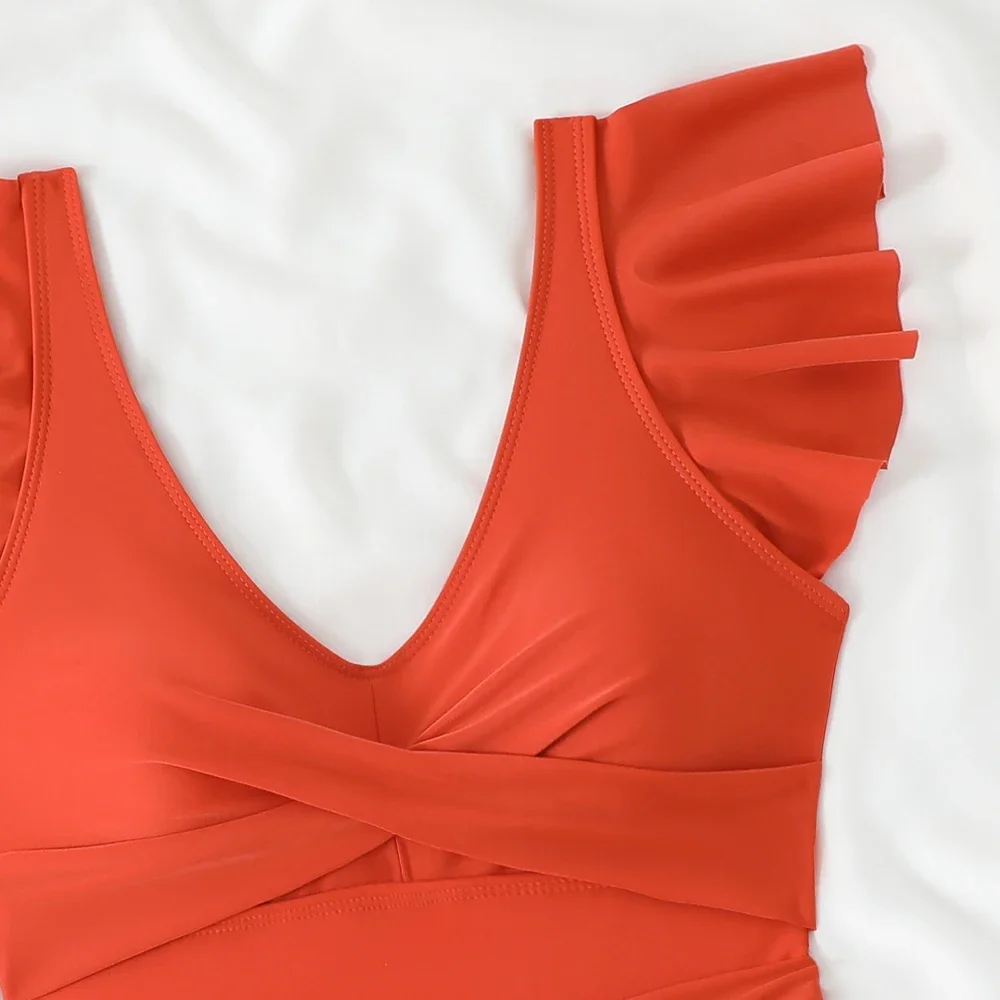 2025 Sexy Ruffle Swimsuit One Piece V-neck Drawstring Swimwear Women Bathers Bathing Swimming Swim Suit Female Beachwear XXL
