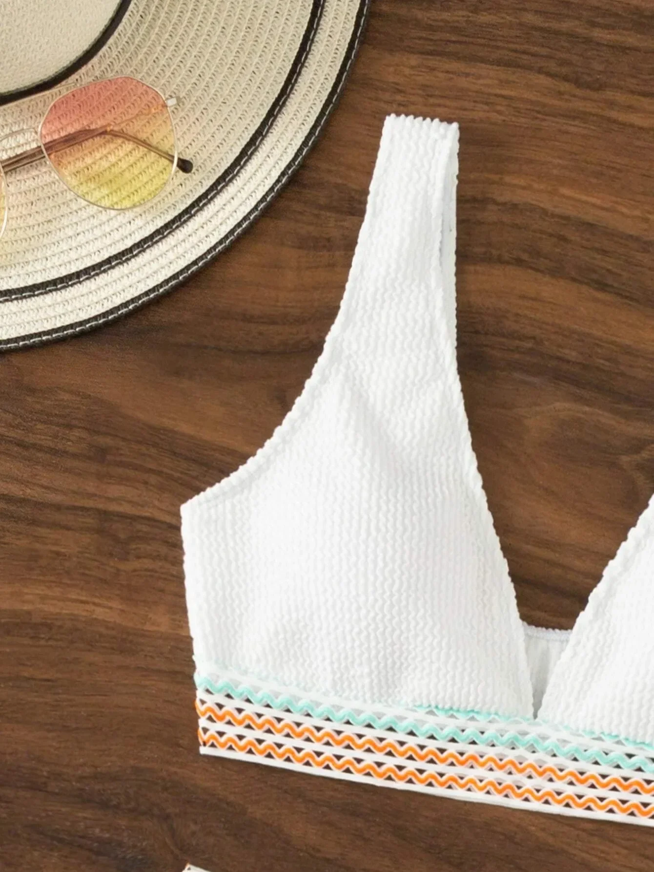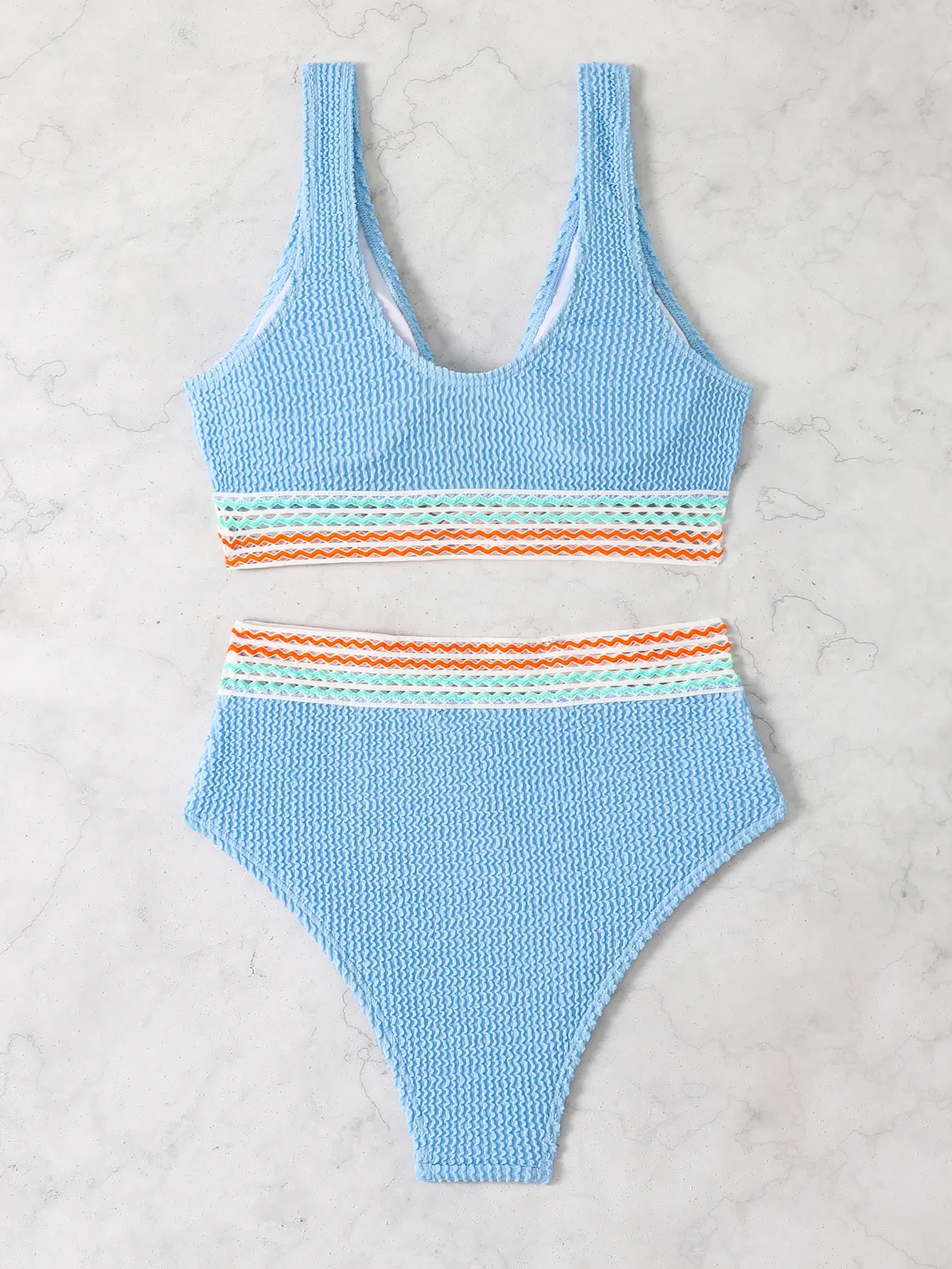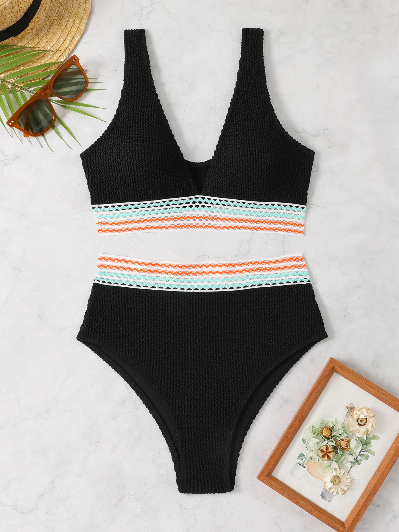 2025 Sexy Strape Tape Swimsuit Women Solid High Waist Bikini Set V-neck Swimwear Female Padded Bathing Suit Swimming Beachwear
