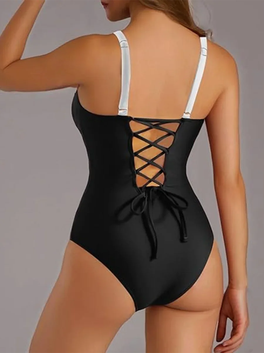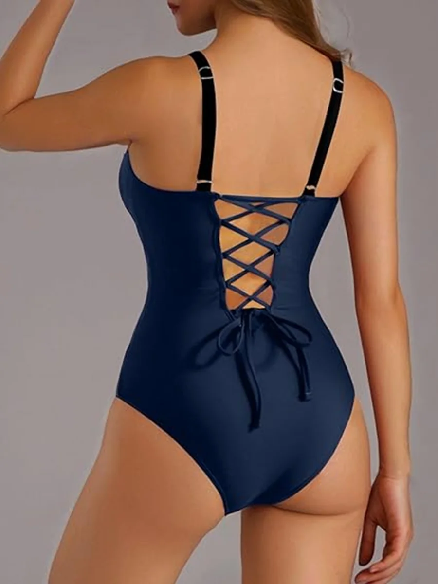 2025 Strappy Swimsuit Women One Piece Solid Slim Swimwear Female Bathers Bathing Swimming Swim Suit Beachwear XXL