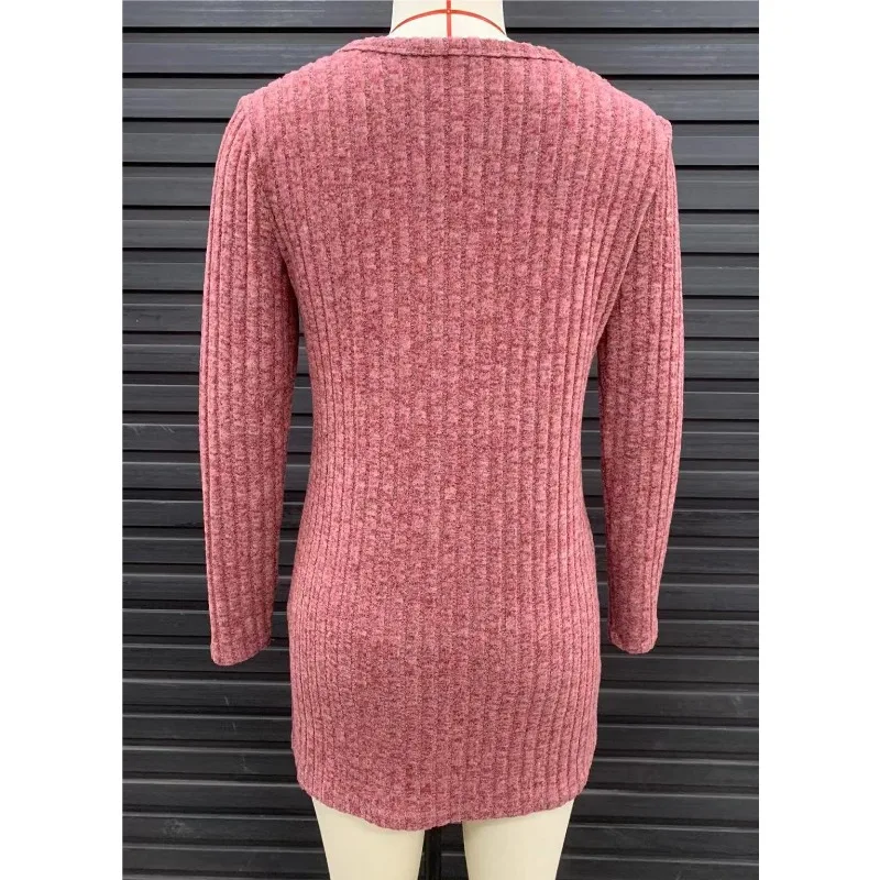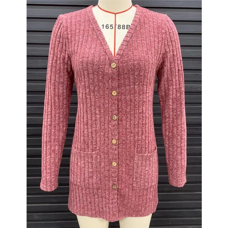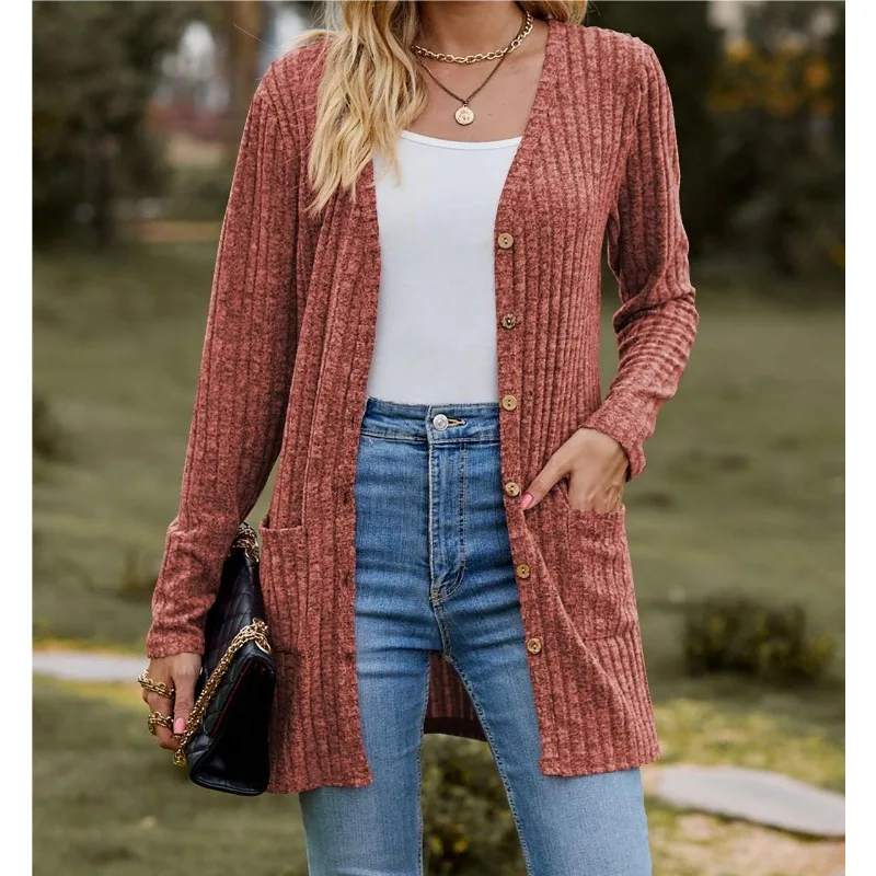 Autumn New Women's Milled Pit Stripe V-Neck Solid Colour Button Long Sleeve Ladies Casual Extensions Cardigan Jacket Coat