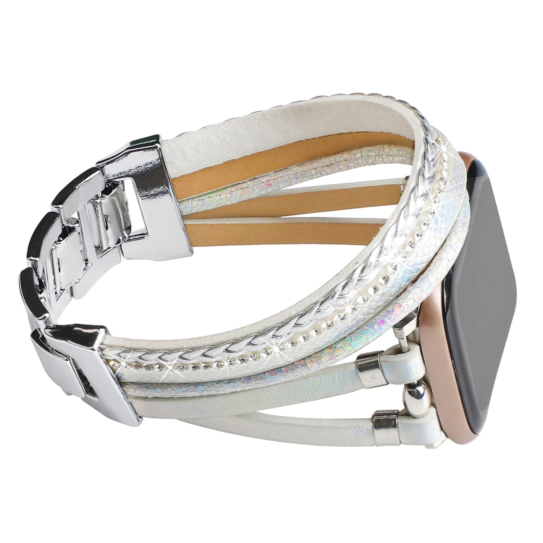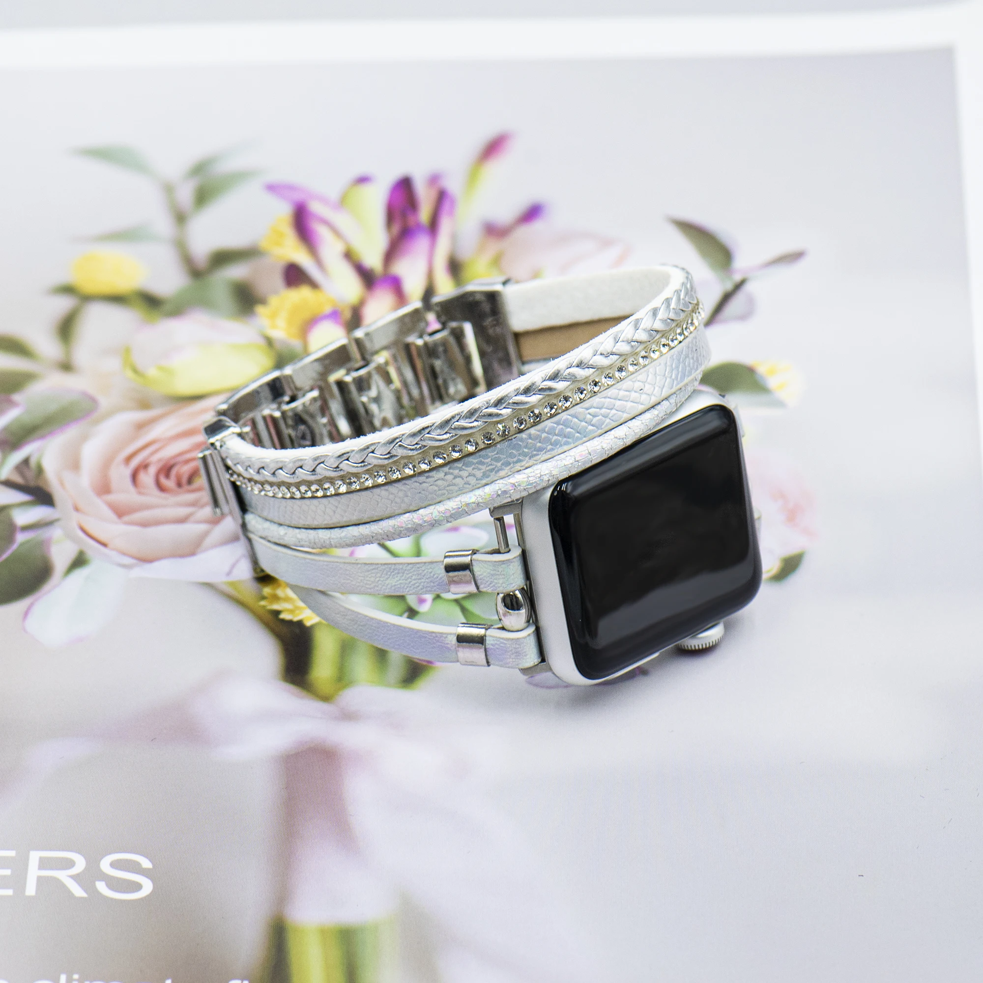 Boho Leather strap for apple Watch strap, men and women 38mm/40mm/41mm 42mm/44mm/45mm/49mm, stylish hand-printed leather strap