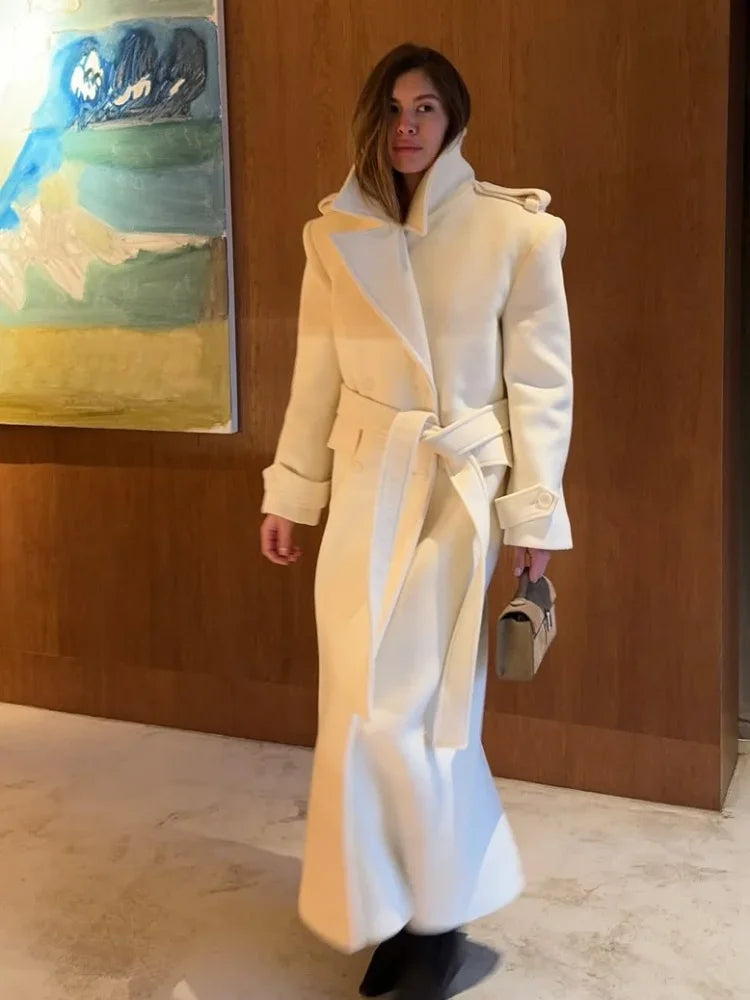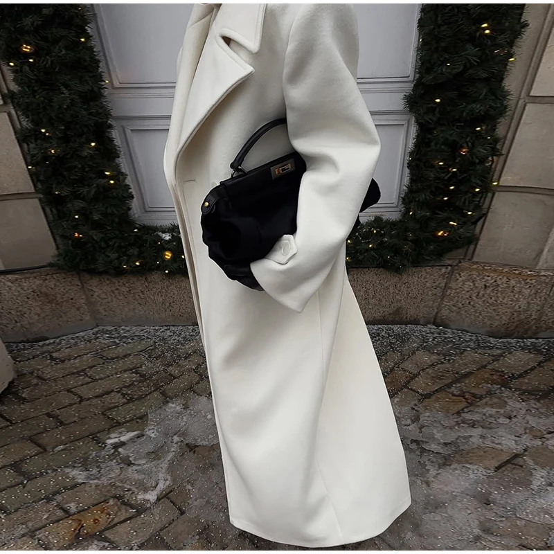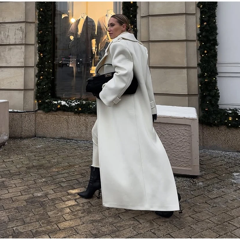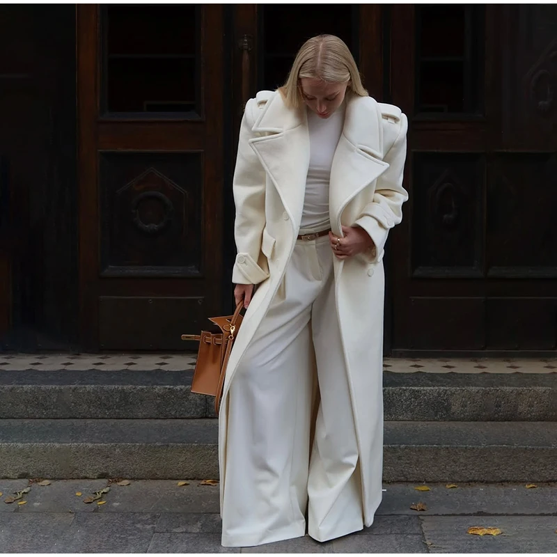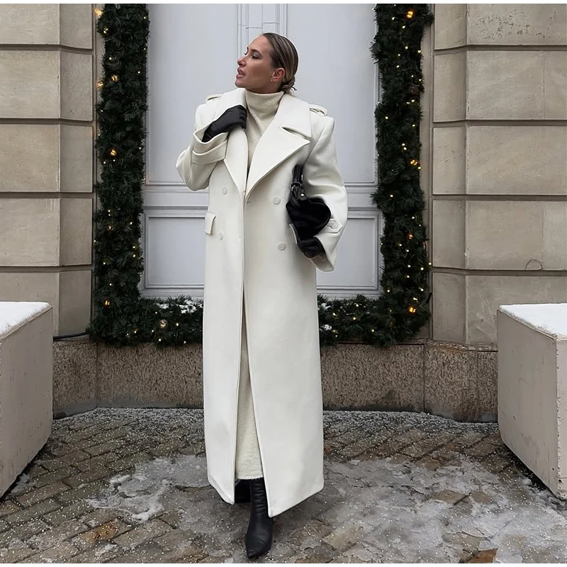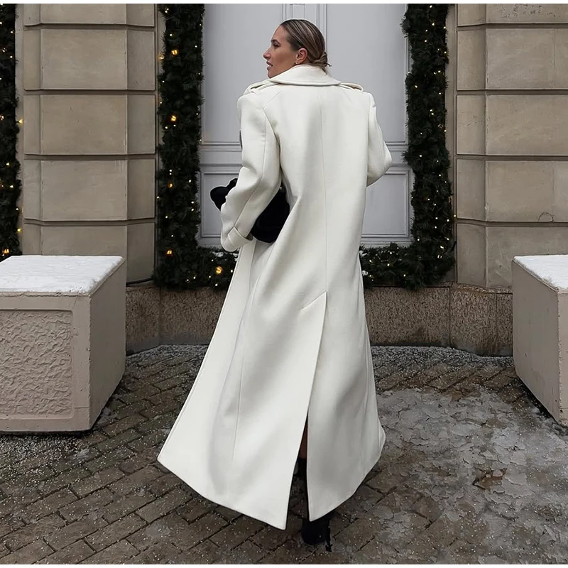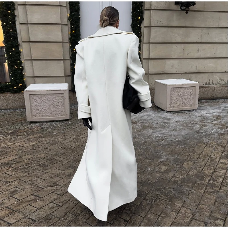 Elegant Lace Up Overcoats Women Double-breasted Wool Long Coats With Pockets 2025 High Street Fashion Autumn Winter Outerwears