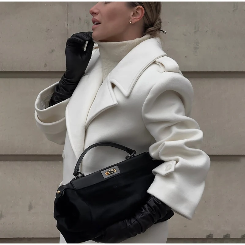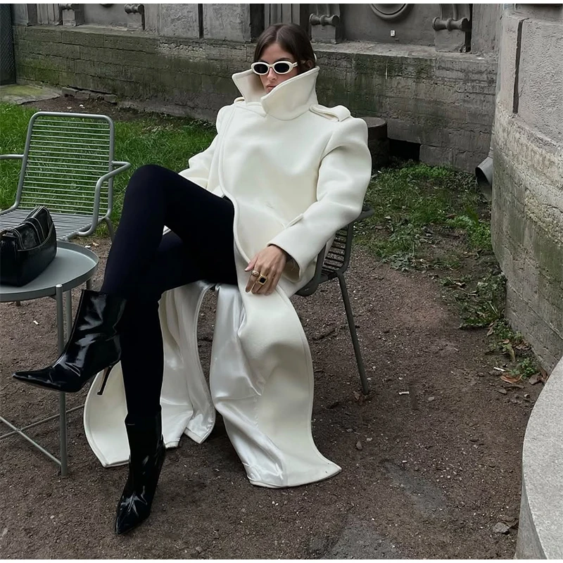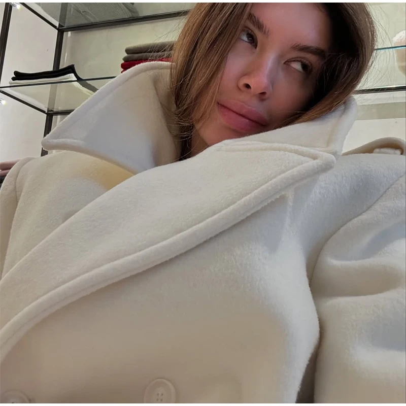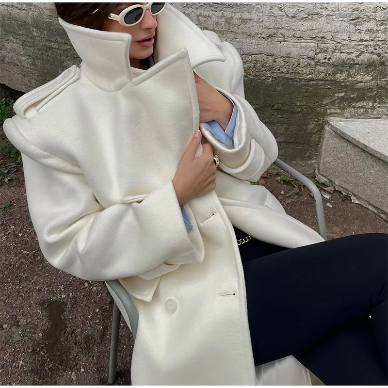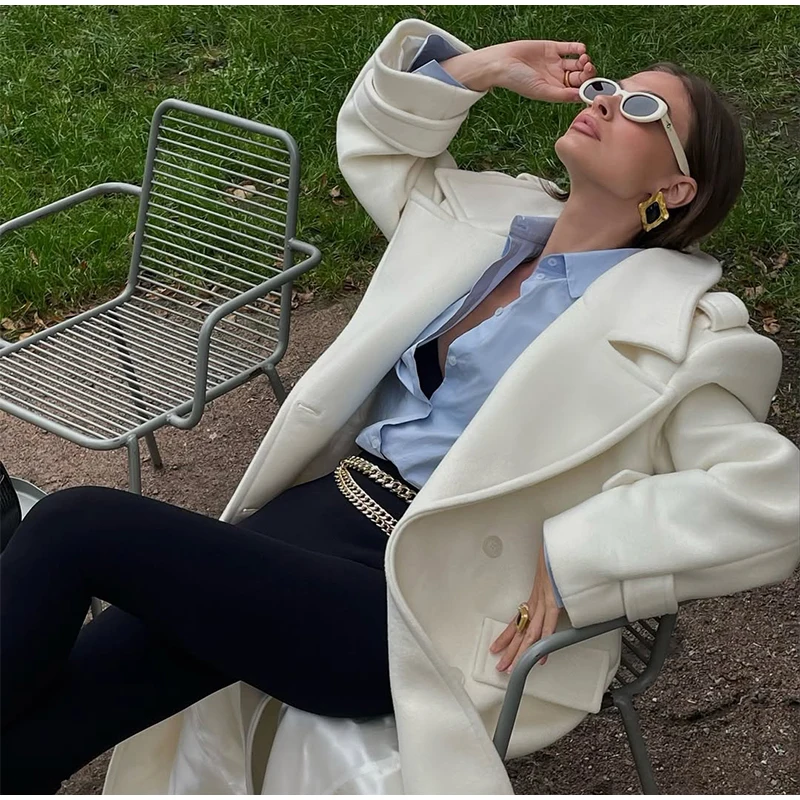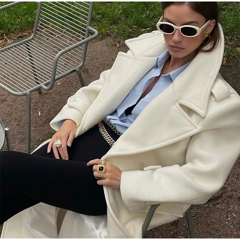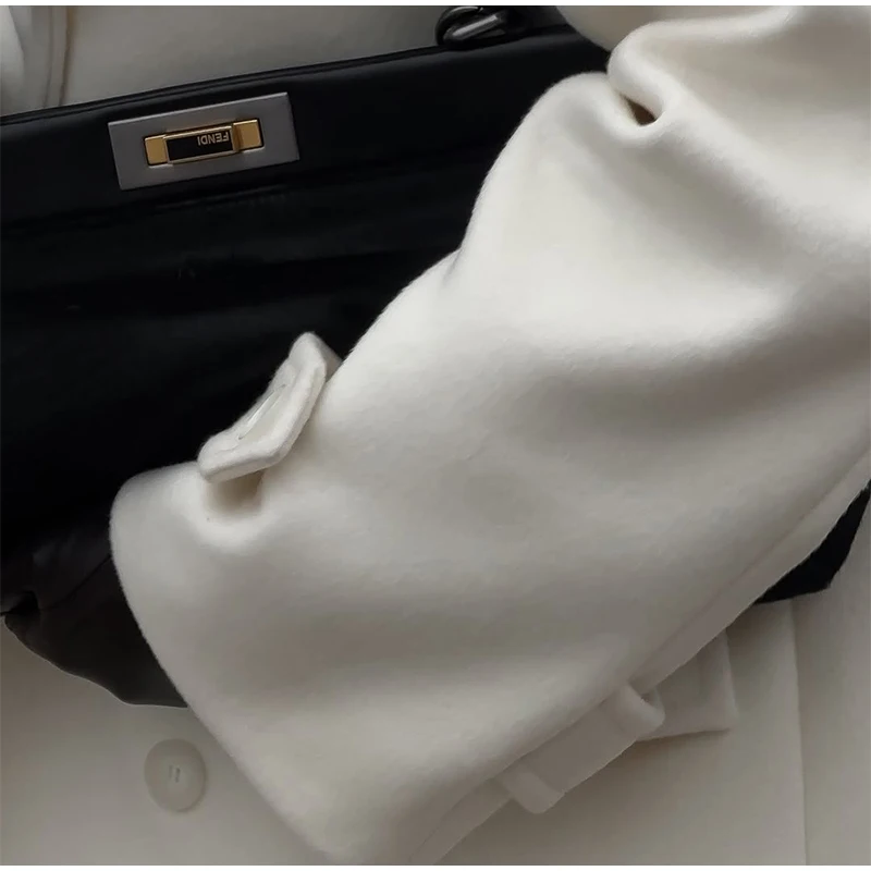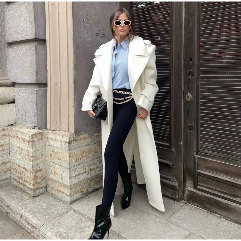 Elegant Lace Up Overcoats Women Double-breasted Wool Long Coats With Pockets 2025 High Street Fashion Autumn Winter Outerwears