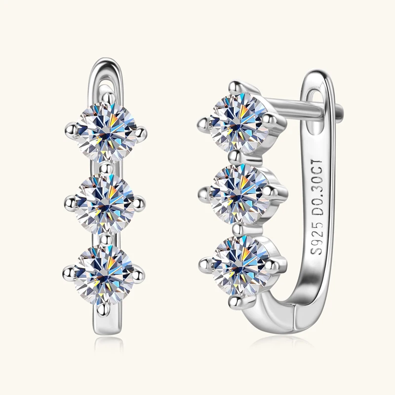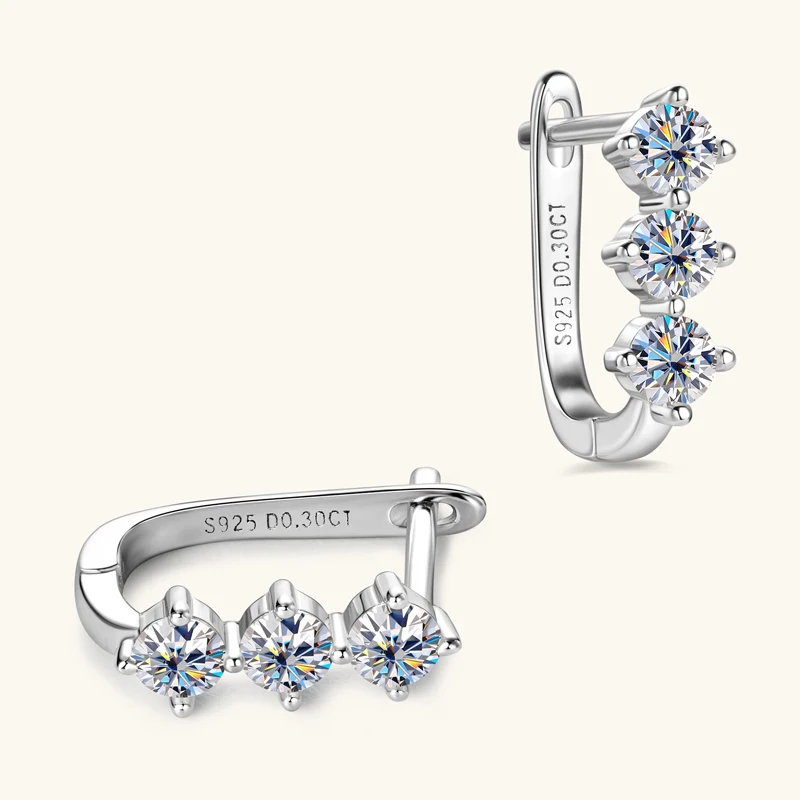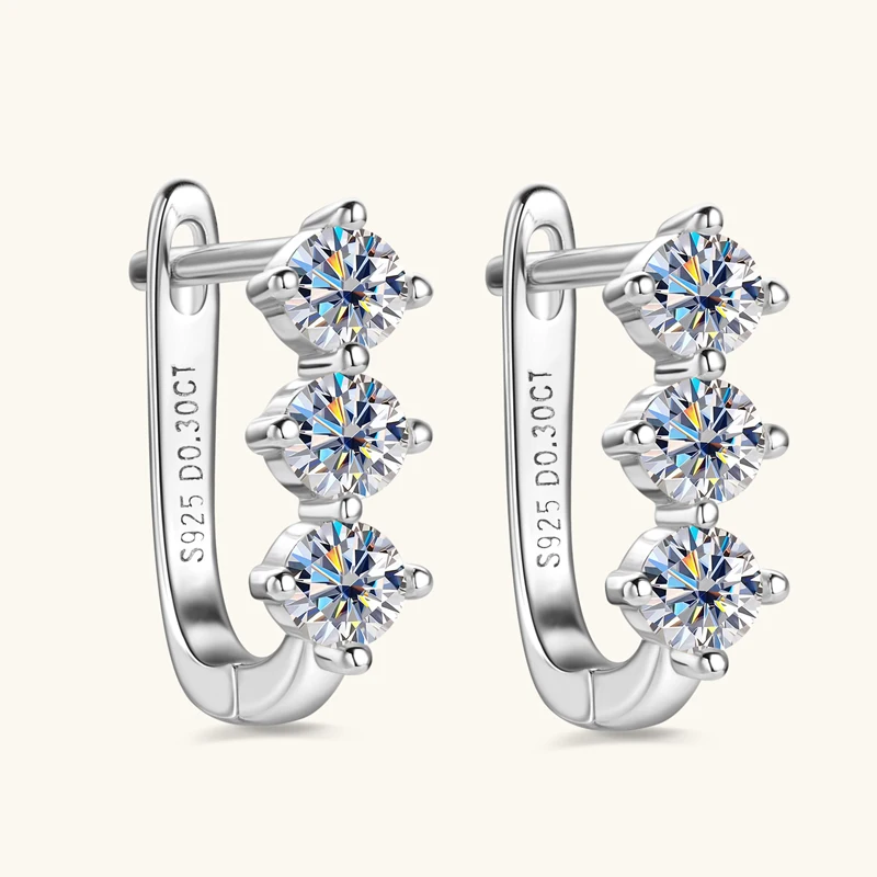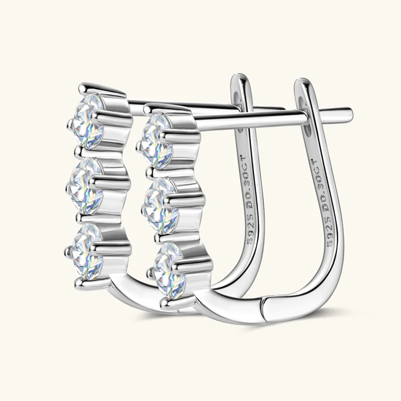 Fashion Classic U-shaped earrings S925 Silver 3mm Moissanite Hoop Clip Earring Fine Jewelry Gift