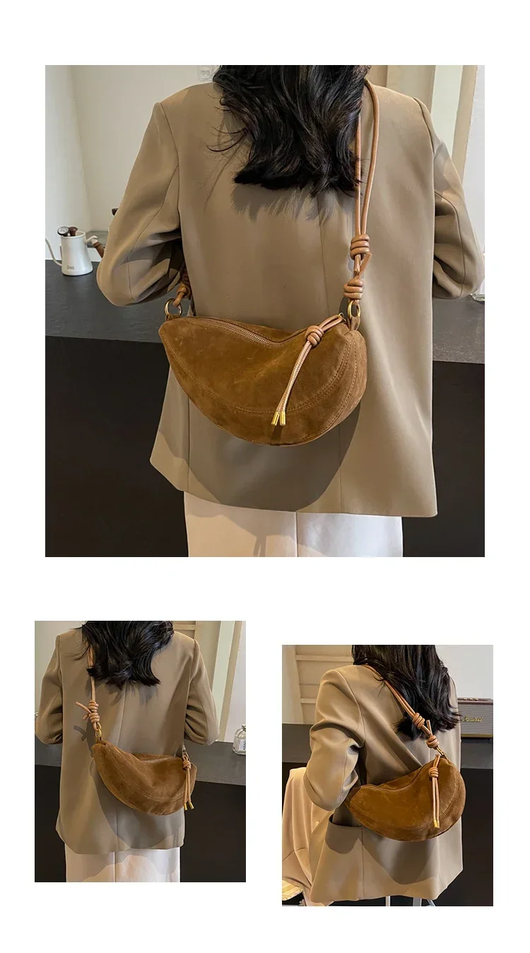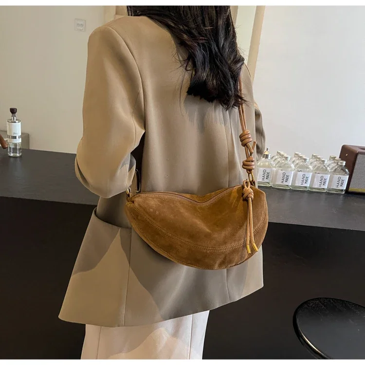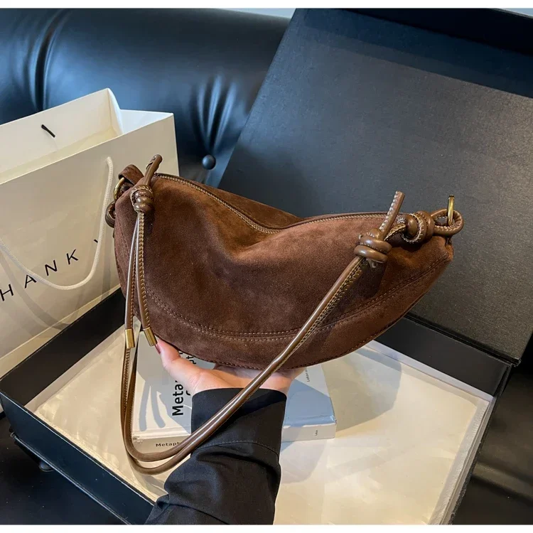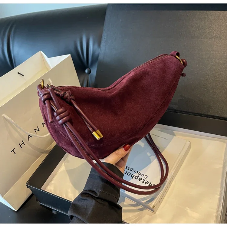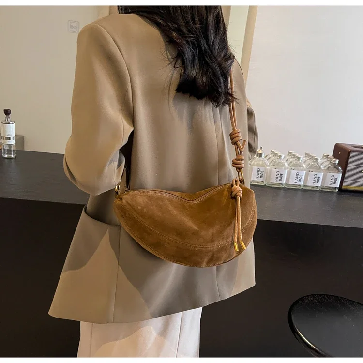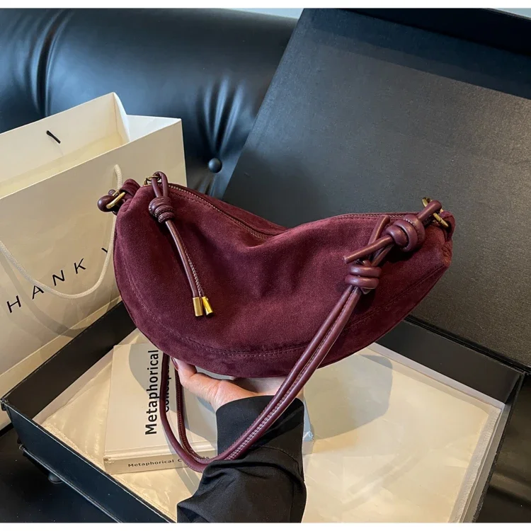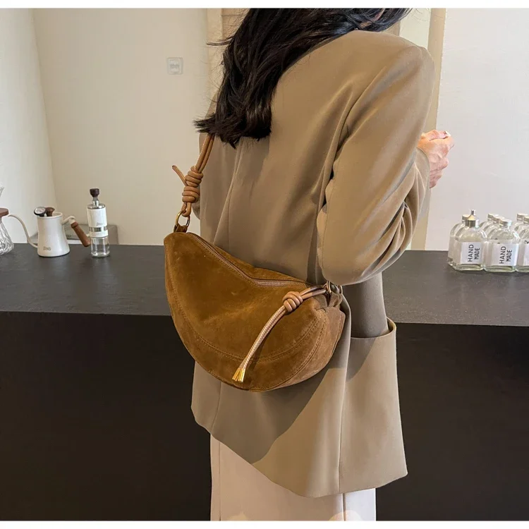 Faux Suede Super Popular Niche Suede Shoulder Bag for Women 2025 Hot Sale Single Crossbody Bags Underarm Dumpling Sweet Bags