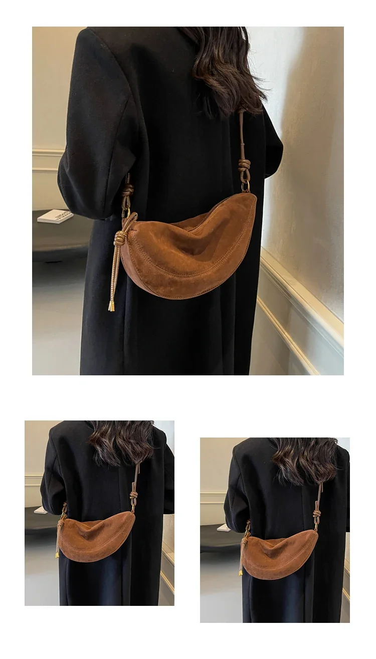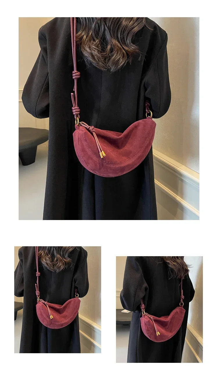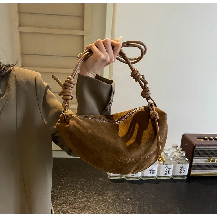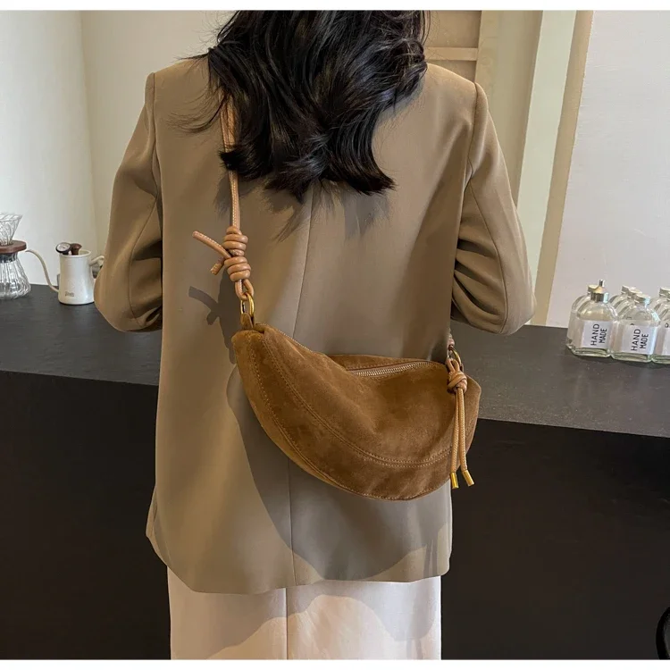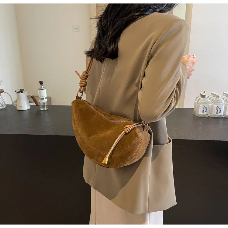Faux Suede Super Popular Niche Suede Shoulder Bag for Women 2025 Hot Sale Single Crossbody Bags Underarm Dumpling Sweet Bags