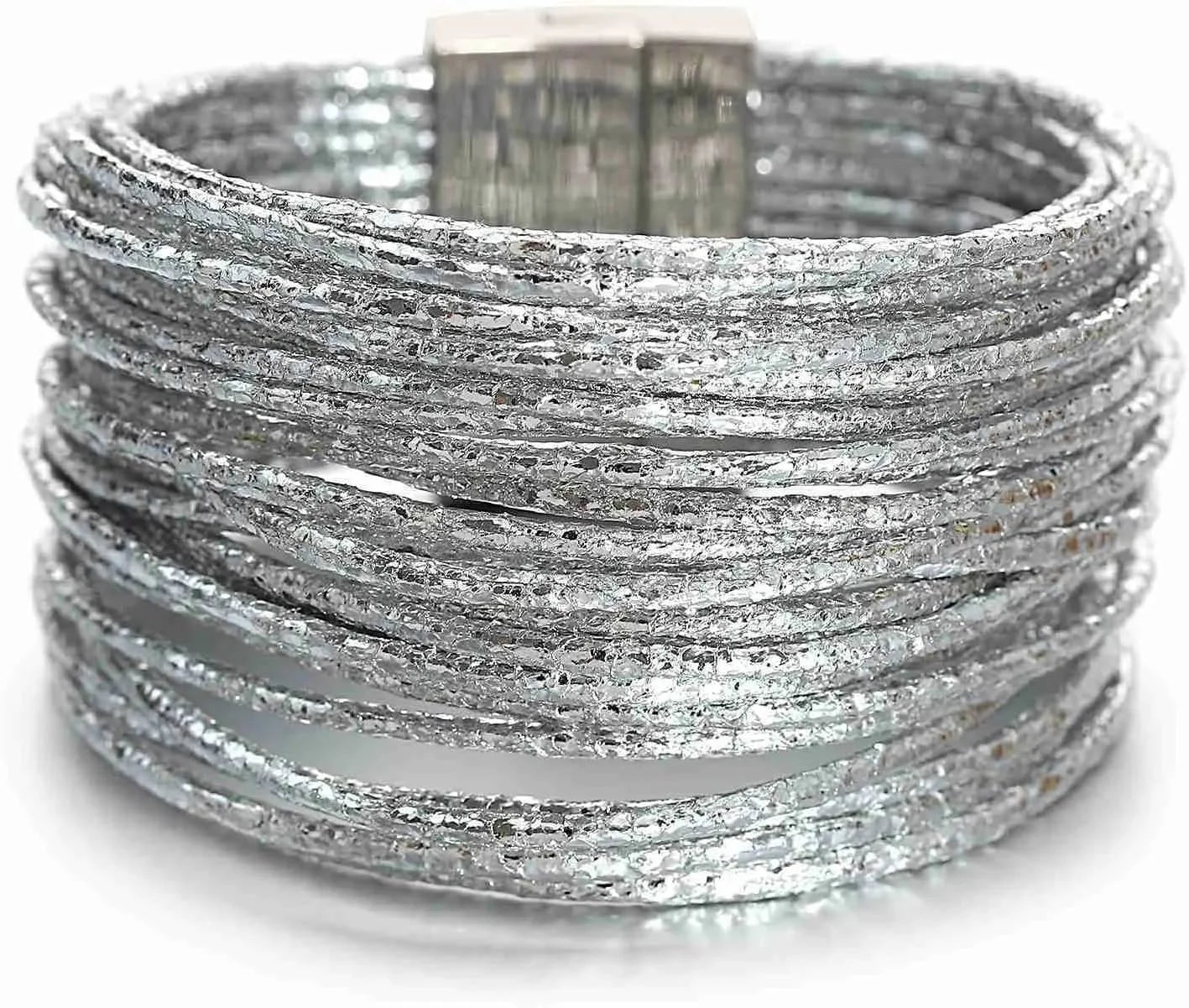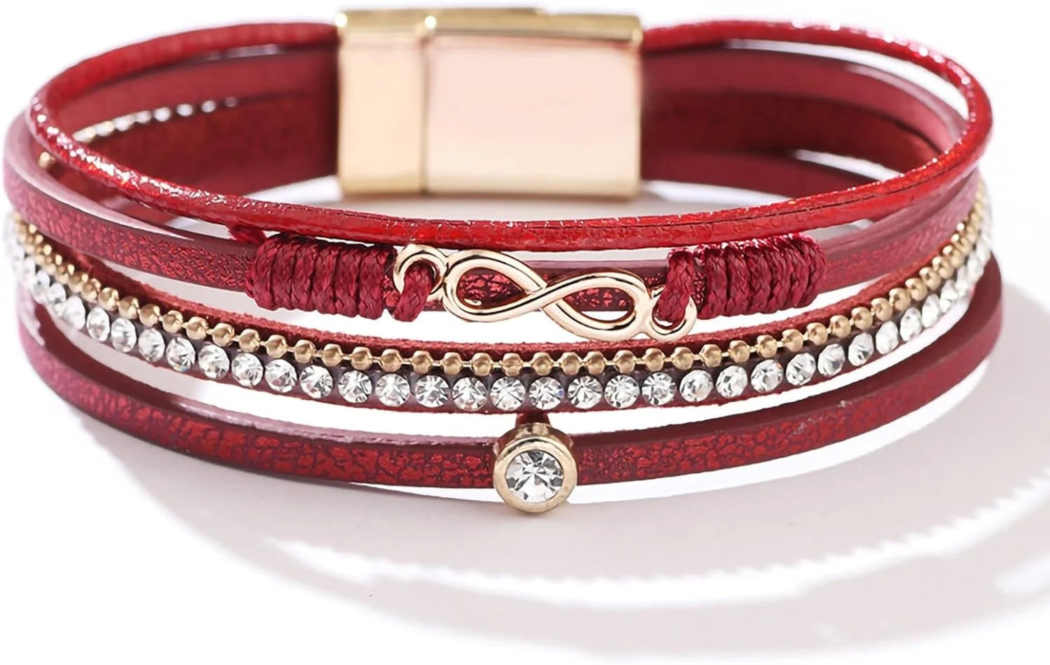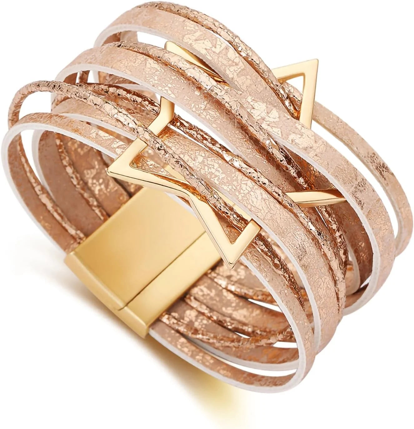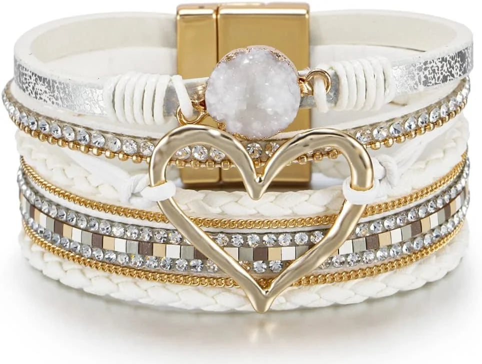 Fesciory Leopard Bracelet for Women, Boho Leather Wrap Multi-Layer Pearl Crystal Bracelet Bangle Jewelry