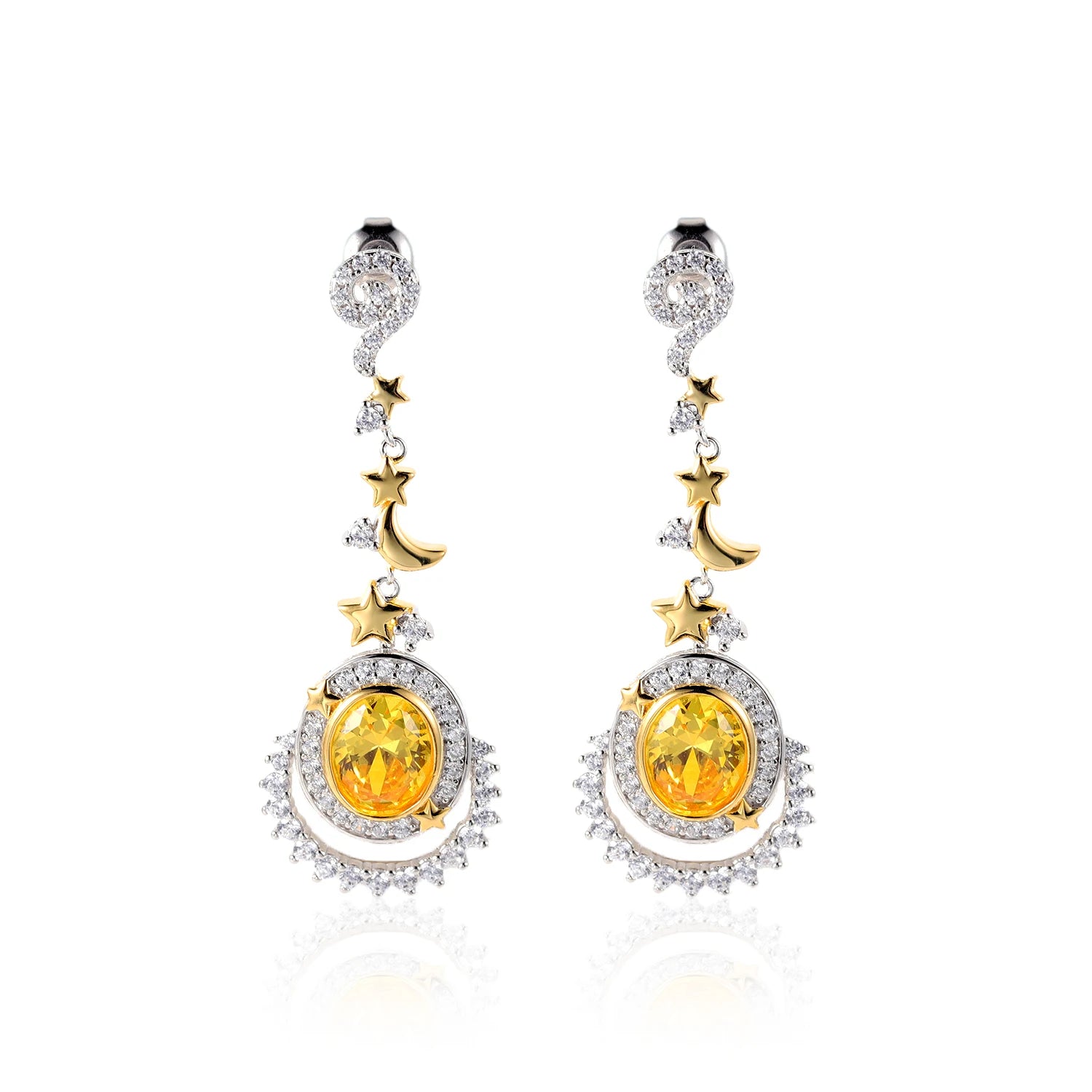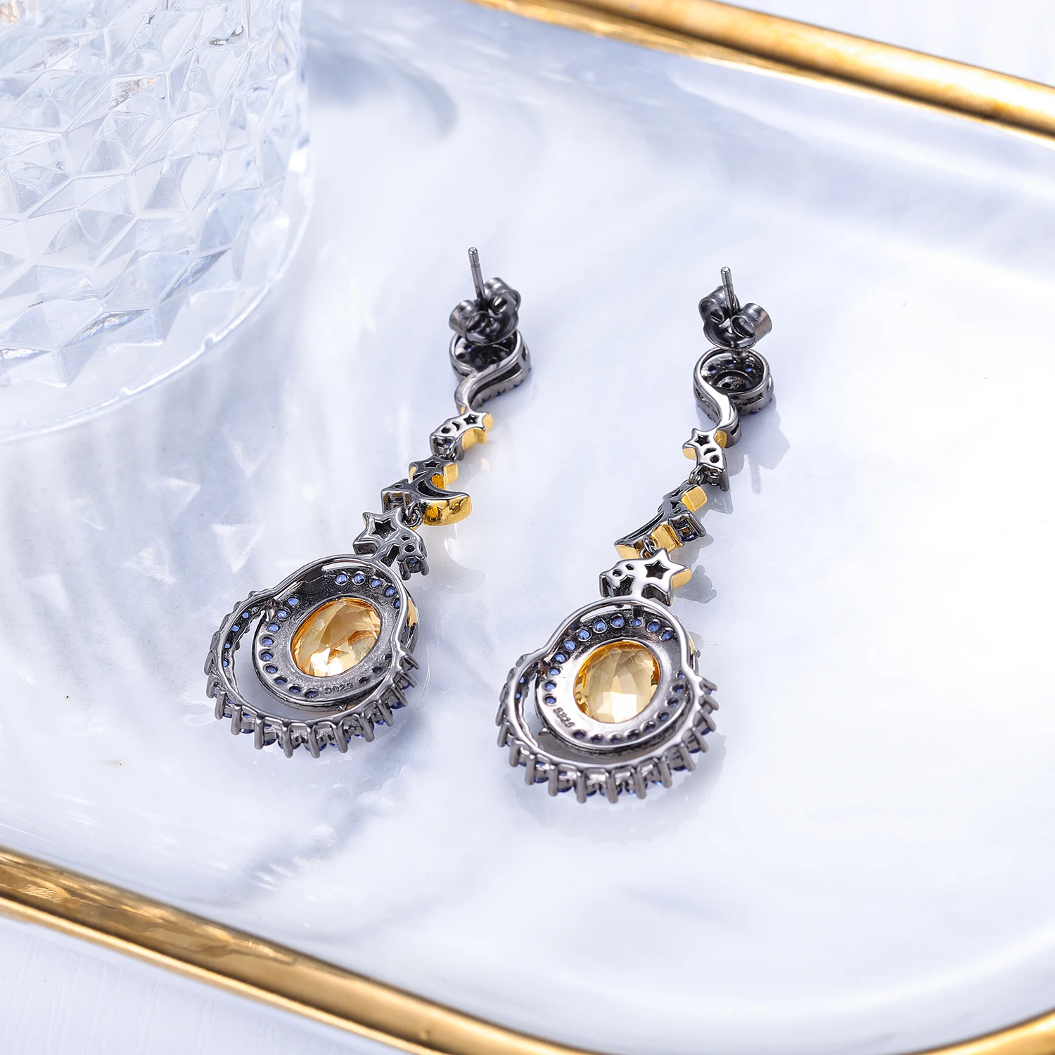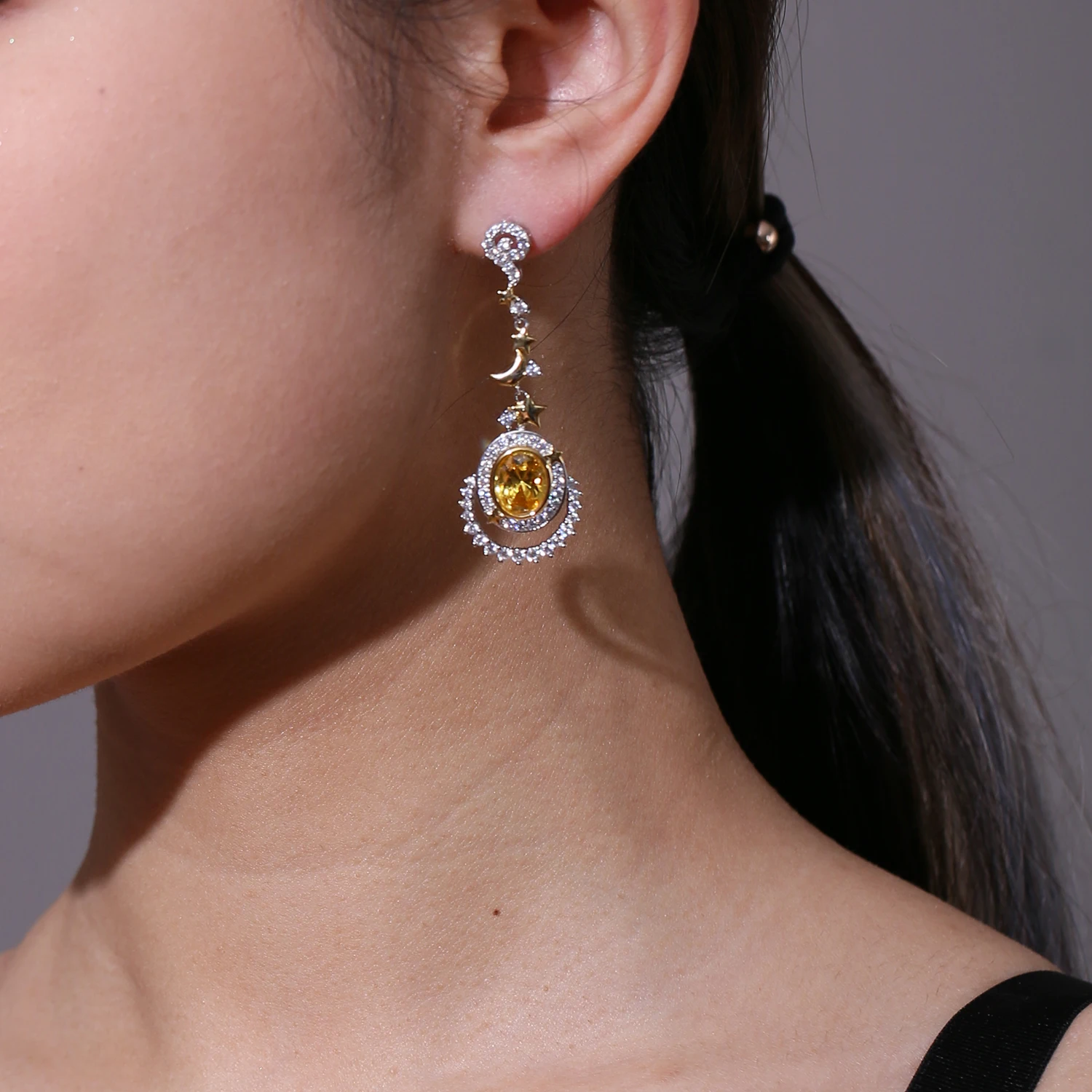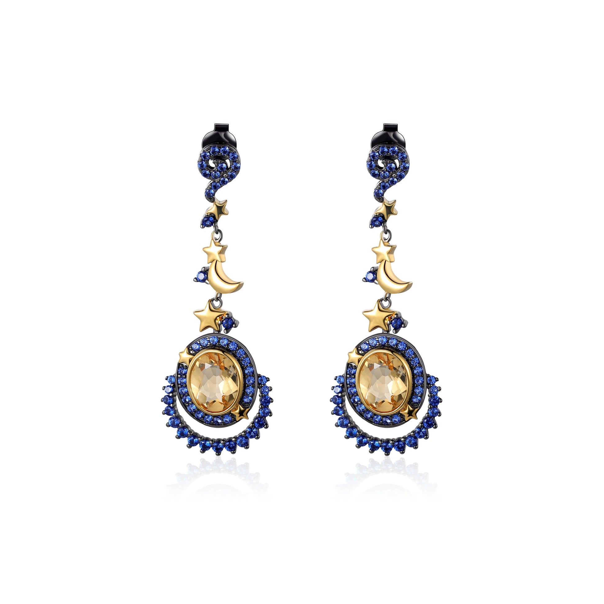 lab Blue Sapphire Vintage Earrings 925 Sterling Silver Handmade Star Moon Element Drop Earrings for Women Jewelry