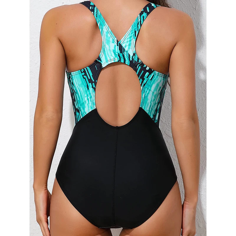 Printed One Piece Swimsuit Women Hollow Out Backless Triangle Skinny Sport Swimwear 2025 New Bathing Suit Professional Swimming