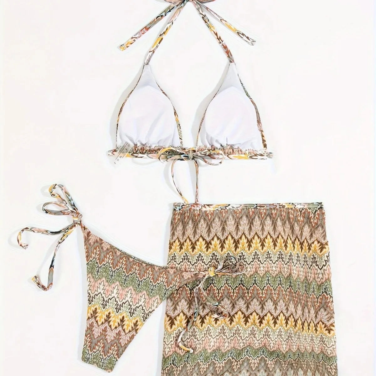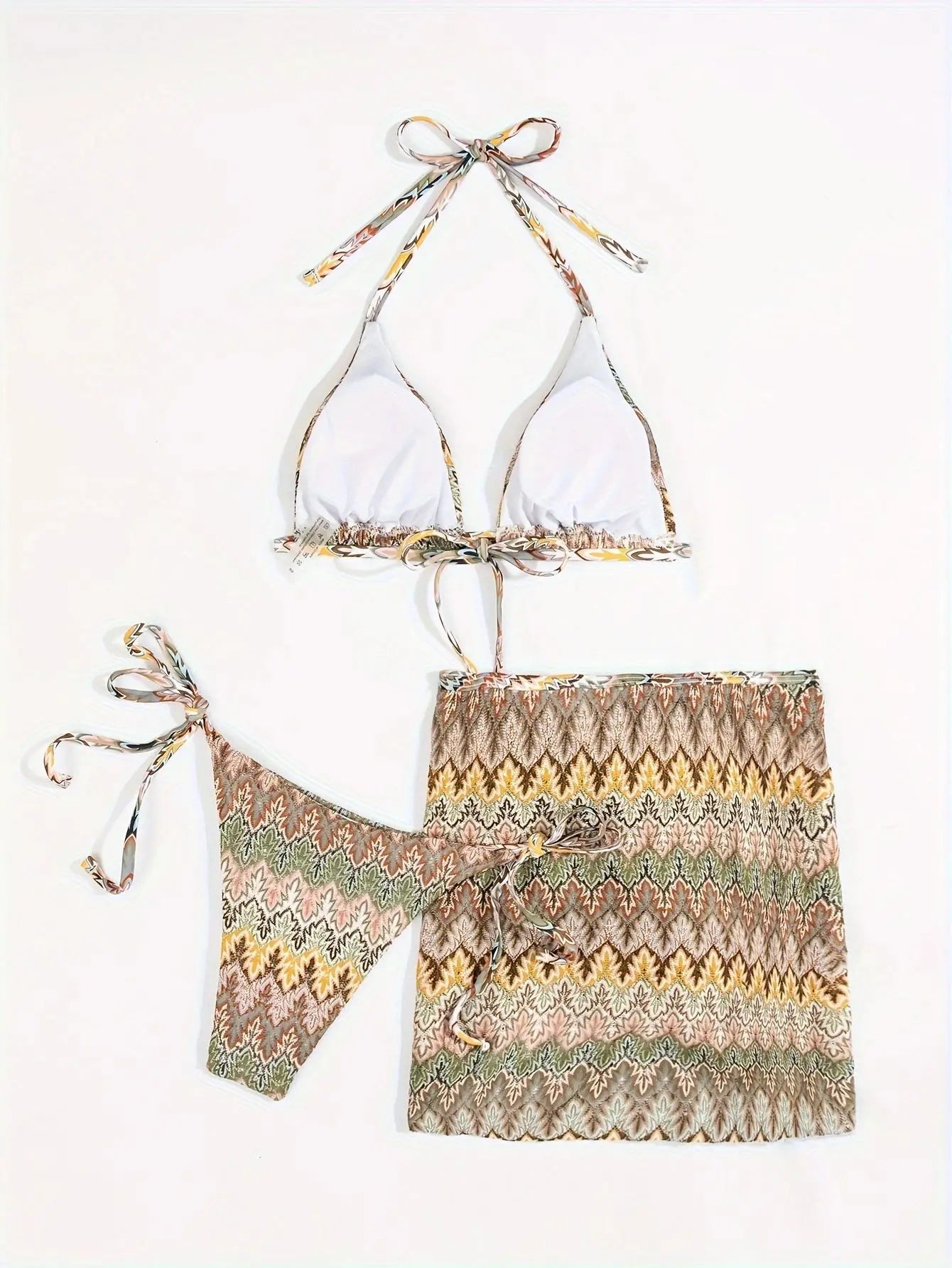 Sexy 3 Pieces Bikini Women Swimsuit 2025 Summer Halter Triangle Swimwear Bottom Bikinis Sets Beach Cover Up Female Bathing Suits