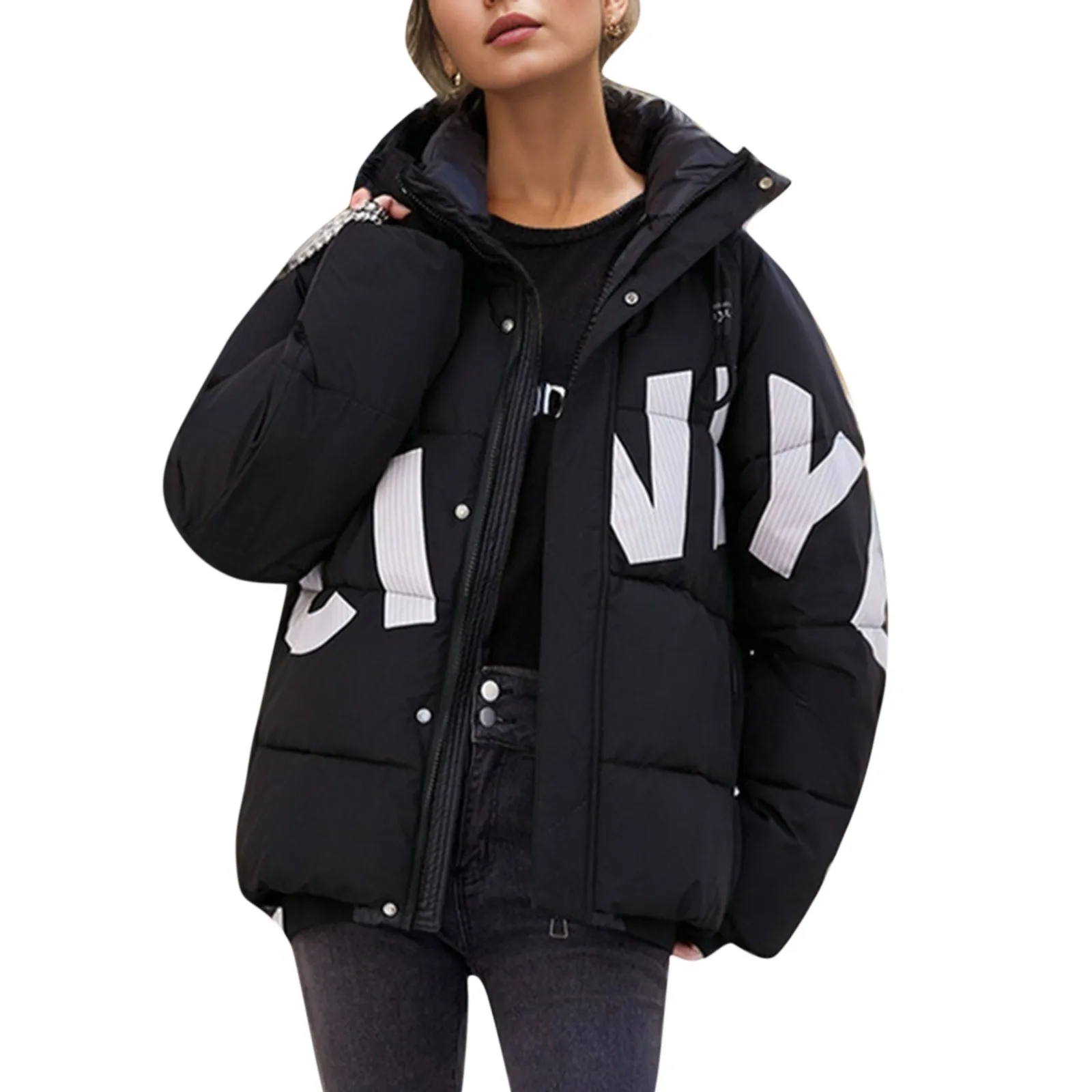 Thicken Jacket Letter Graphic Women Winter Coat Unisex Oversize Parkas Jacket Coat Warm Baggy Casual Jackets Female Y2k