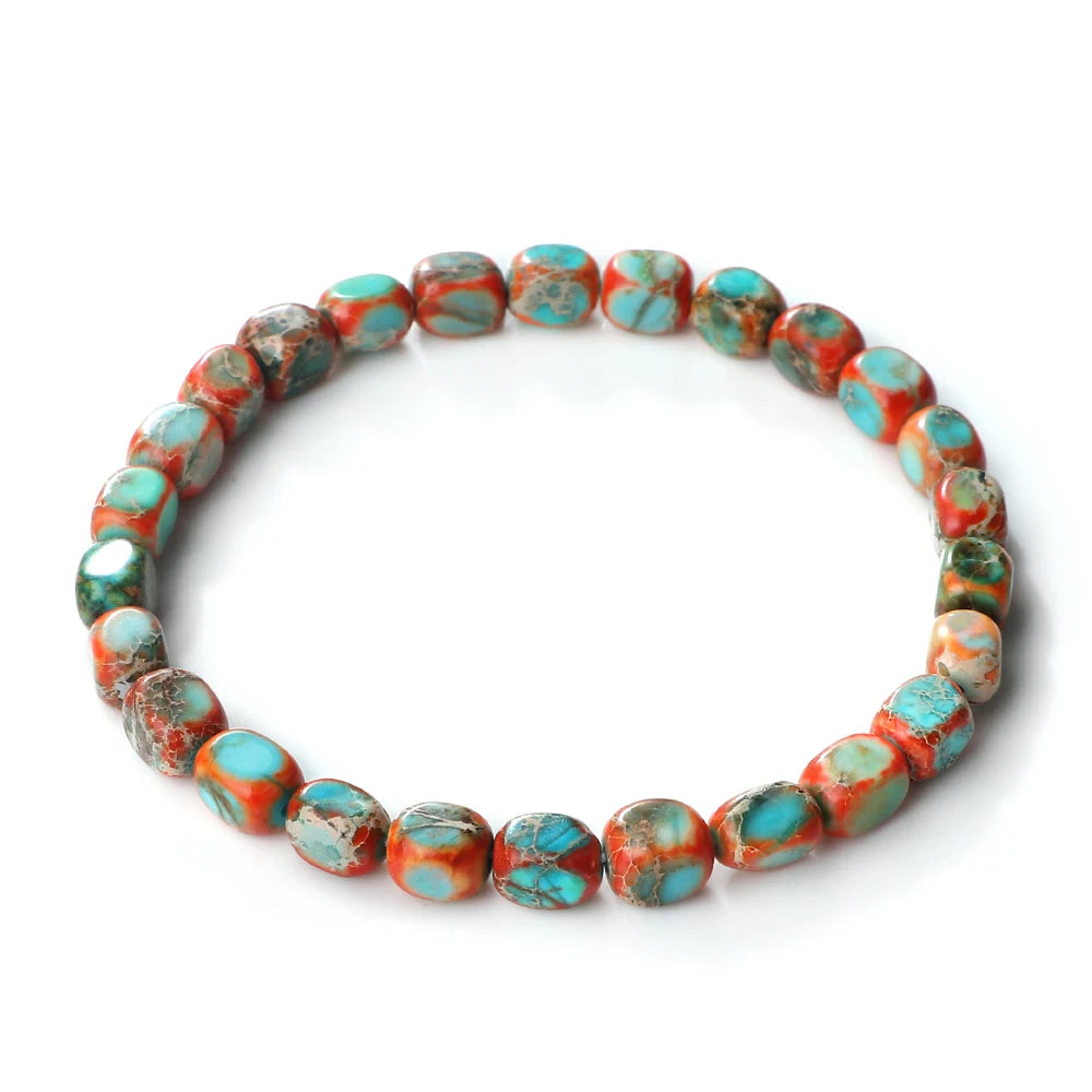Vintage Elastic Bead Bracelet Square Emperor Stone Bangle Women Men Chakra Healing Couple Bracelet Natural Chain Jewelry