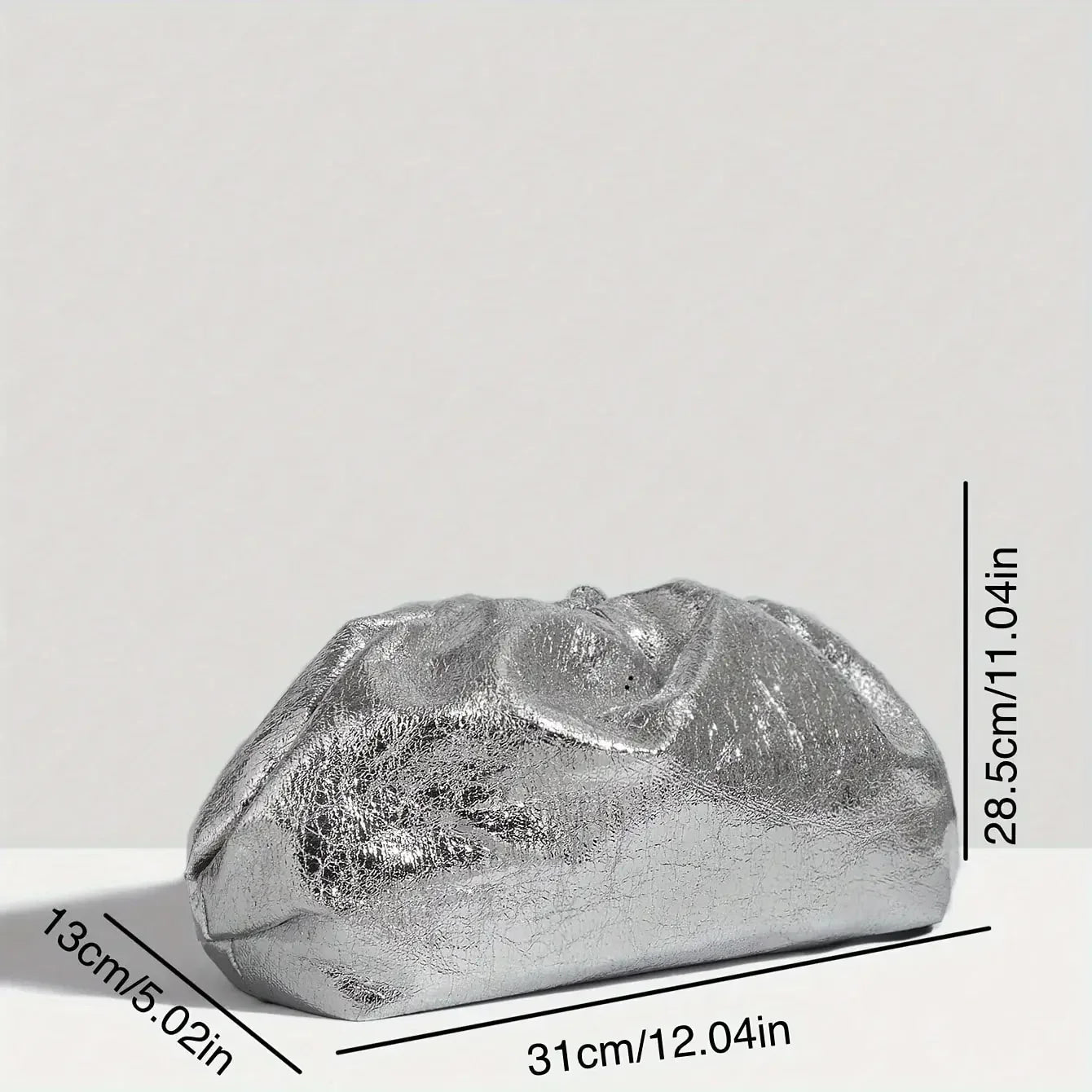 Women Metalic Clutch and Grab Bag in Silver and Gold Color Suitable for Wedding Party ,Christmas, Valentine's Day and Dinner