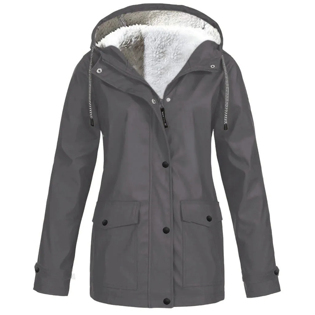 Women's Autumn Winter Plus Velvet Jacket Windproof Waterproof Hooded Coat Outdoor Sports Cloths For Climbing Cycling Fishing