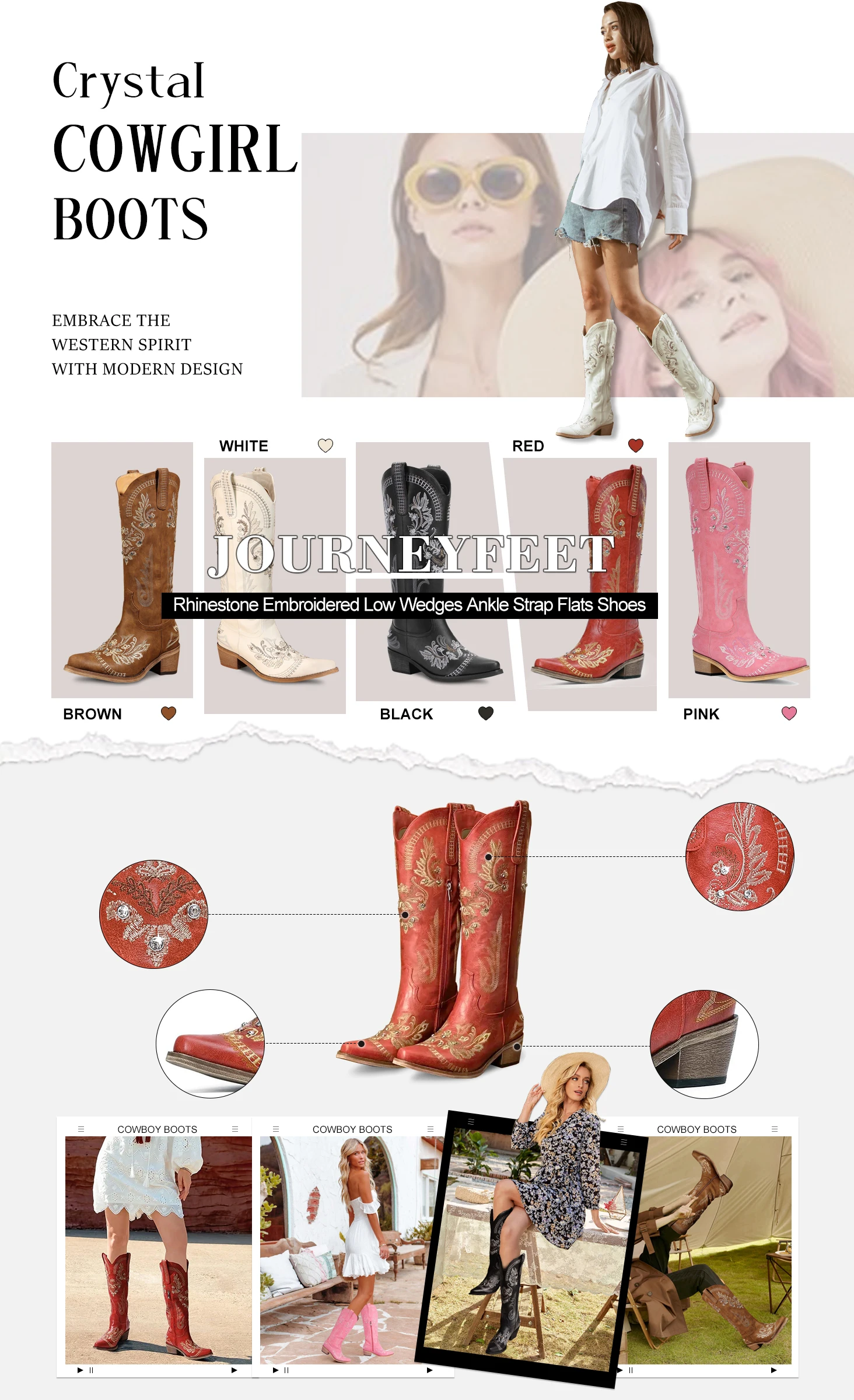 Women's Wide Calf Knee-High Cowgirl Boots: Glitter Sparkly Rhinestone Western Boots with Classic Embroidery, Pointed Toe, and Si